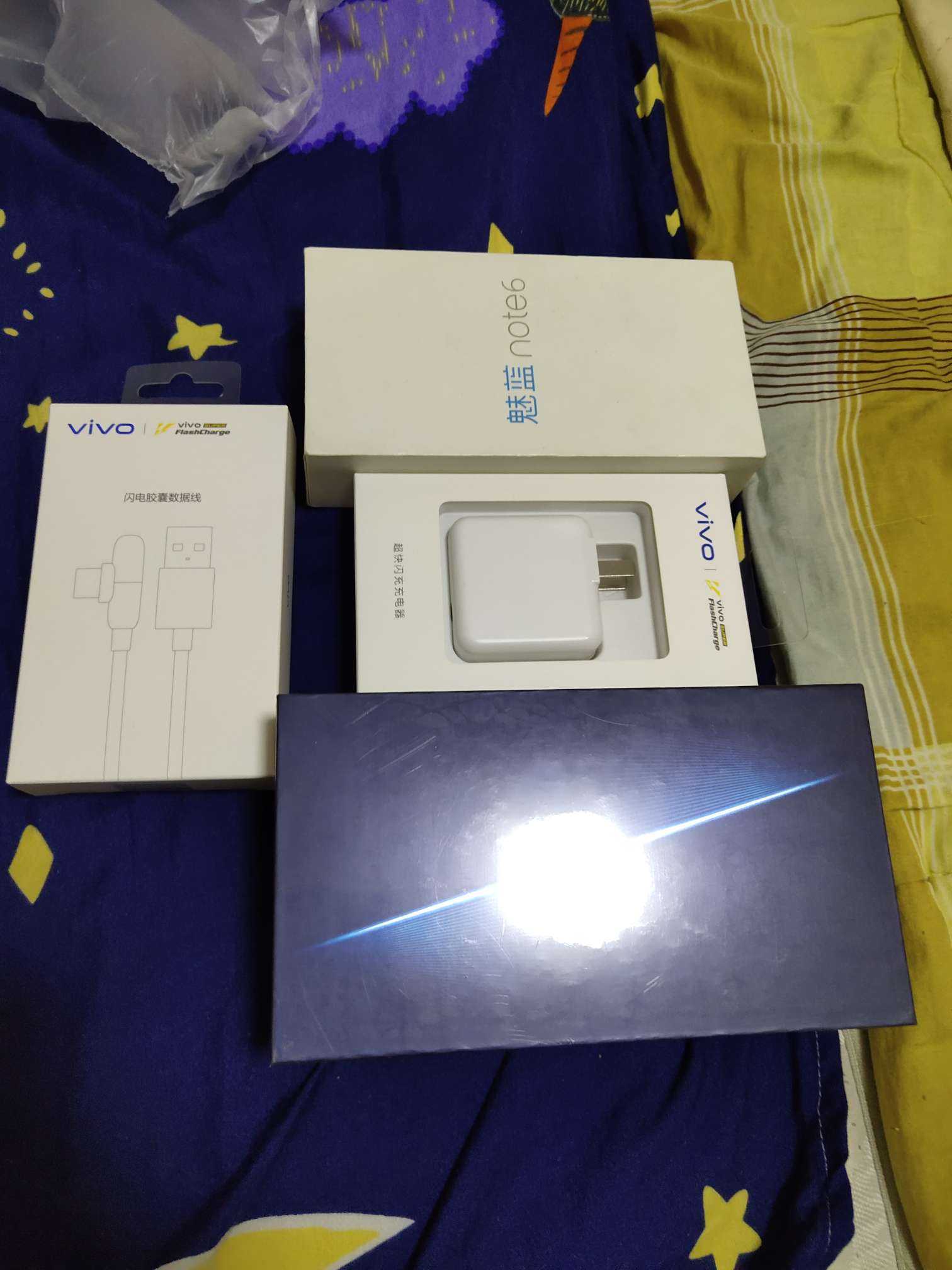 当时开箱有拍了照片,我们来看一下。送了一套4A*11V的44W快充充电器,出厂自带一张薄膜,还送了个壳子。