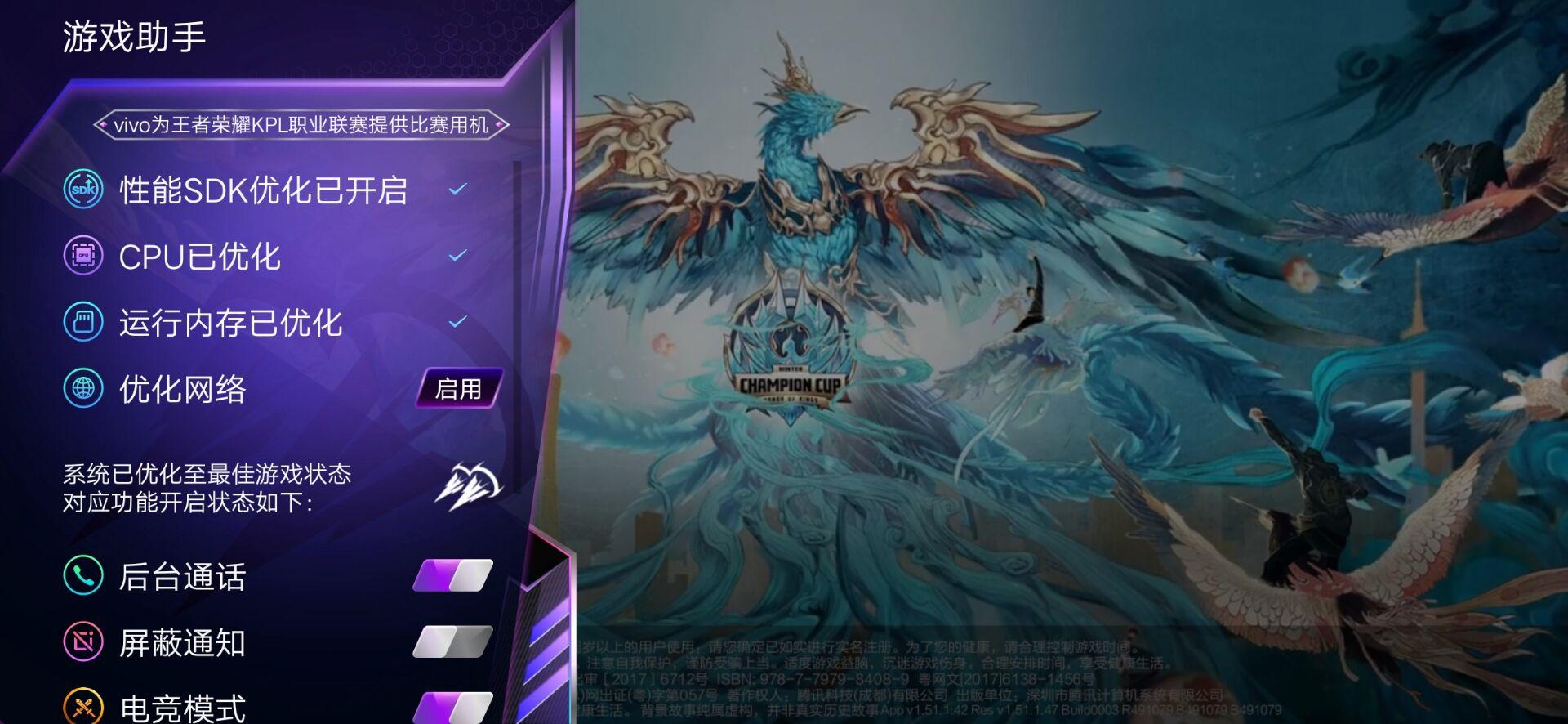 开始测评,我们来看一下当下流行的王者荣耀,首先打开游戏,左侧弹出界面,这是vivo手机对于腾讯游戏的特殊优化,可以把CPU与gpu性能发挥到淋漓尽致。