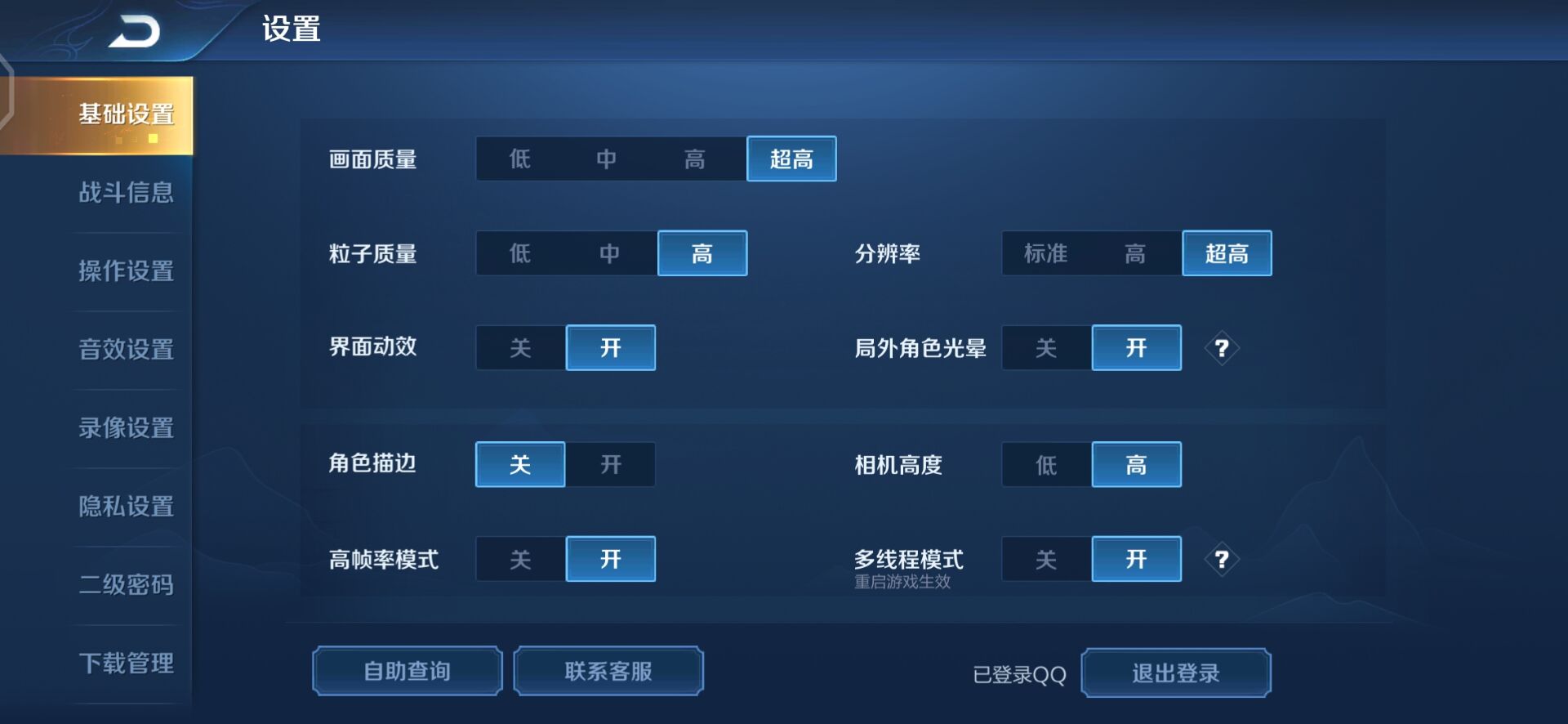 进入游戏,我们把画质,粒子质量与分辨率全部开到最高,多线程模式也开上。
