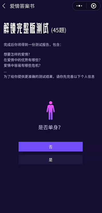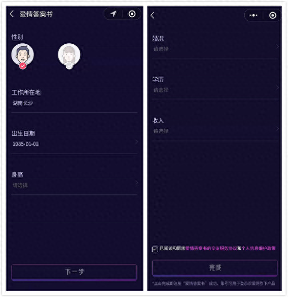 第6步:根据指引填写个人情感信息,一定要真实有效哦,这有助于后面你的爱情人格分析。