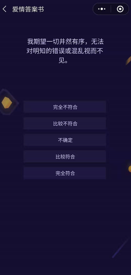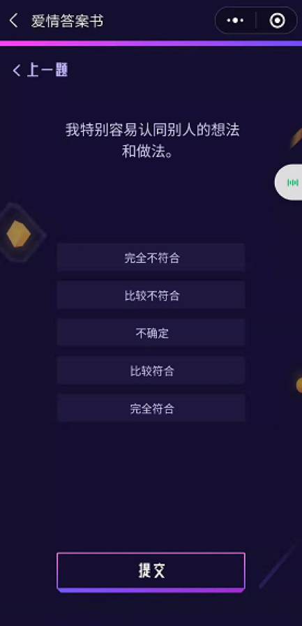 第5步:以上几个爱情特质是不是没看懂、不理解,那就对了,爱情人格哪是这么容易就测试出来的呀,毕竟我们这是专业测试,需要从多角度、多方面来了解一个人的为人处世态度,才能得出正确答案。秉持着科学、求实的精神,我们一起来解锁完整版测试吧。
