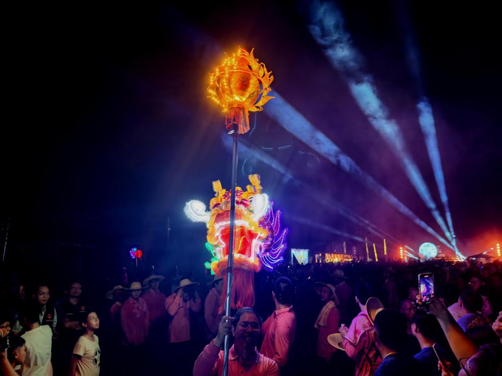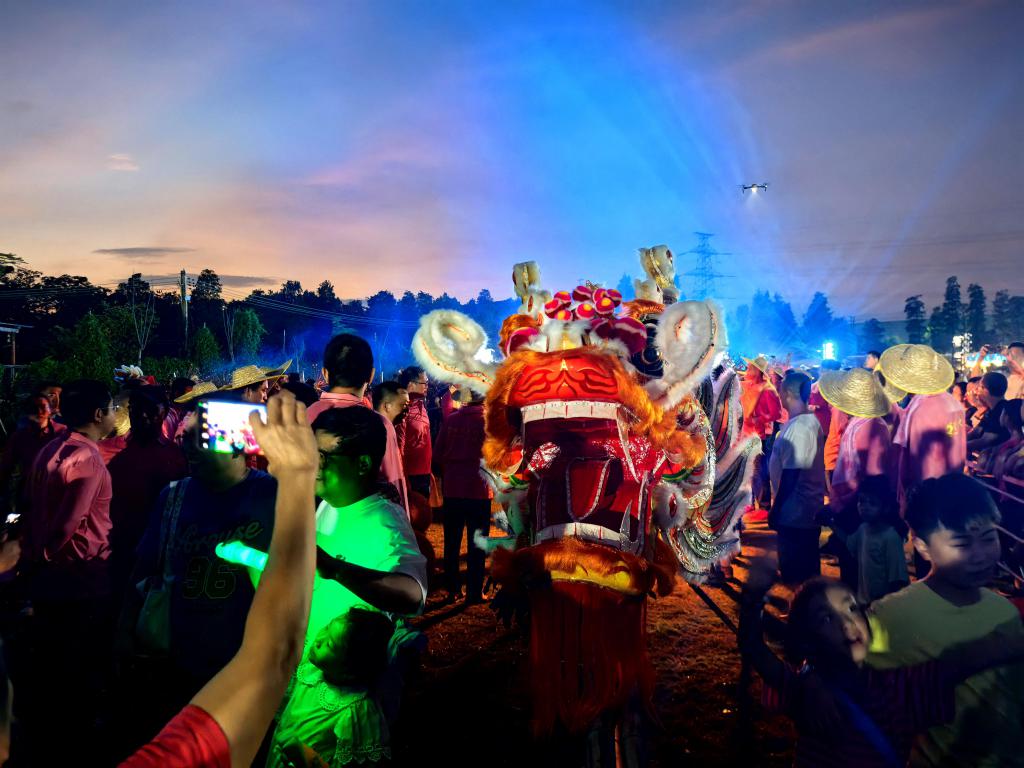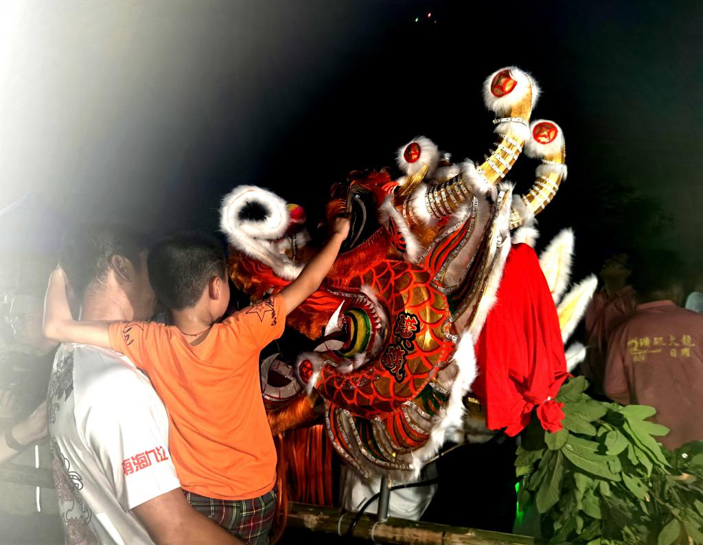当晚约 7 点,在霞光道道的映衬下,璜矶的村民点香、点睛、祭龙烧炮、游龙等活动陆续上演,场面 " 墟撼 ",仪式感满满,每一幕都是传承与创新的碰撞。