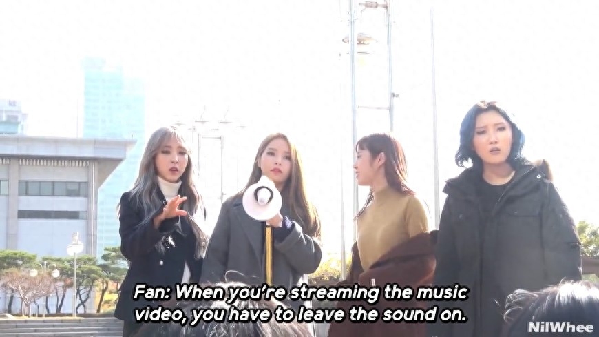 不只是TWICE,其实MAMAMOO在2016年举办迷你FM时,就有向在场的粉丝们询问刷音源的诀窍哦!好奇宝宝玟星坦言自己不会刷音源,只是把当时的主打歌《Decalcomanie》放入歌单内,但粉丝们表示是OK的,但不要单曲循环播放哦!