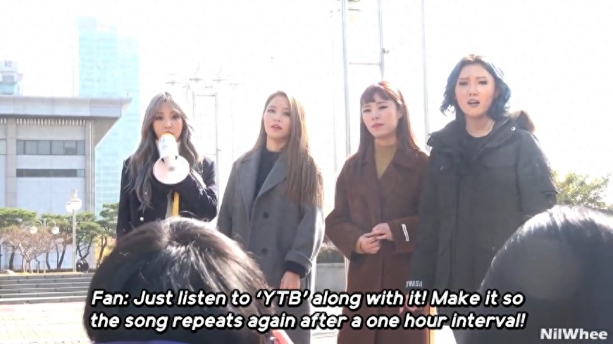 在场的粉丝们也表示,最好是加入其它MAMAMOO的歌曲如《You're The Best》,只要把全部歌曲相隔一小时后循环即可!