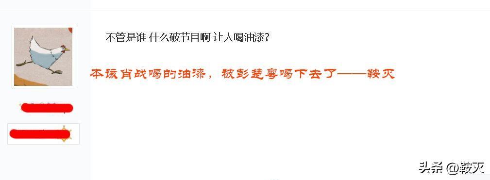两个人都在同一个节目上,都是事件经历者,只不过彭楚粤大度,喝了毒油漆吐血洗胃都没有计较。