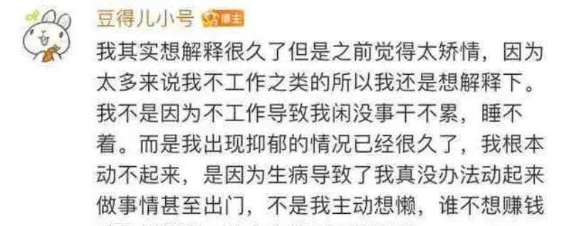 粉丝数量也不如其他前任。有知情人透露,豆得儿表示自己有抑郁问题,导致无法正常工作,处境十分艰难。