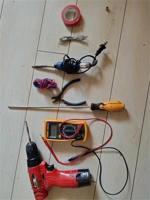 言归正传,首先准备工具,电烙铁,焊锡,十字螺丝刀,剪刀或偏口钳,万用表,电工胶带,电线等