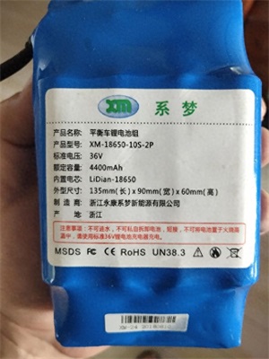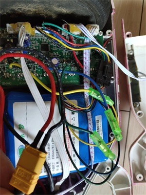 首先开拆,把机盖螺丝拧开,电池仓位一般在充电口的对面一半,所以只拆这一半就行,然后找到电池,有个电池固定架拆掉,把电池插头拔掉,经万用表测量原电池标准电压是36V 4400毫安,现亏电到33V,因锂电池亏电,保护电路板就会断路不冲电,这也是为什么冲不进去电的正真原因。