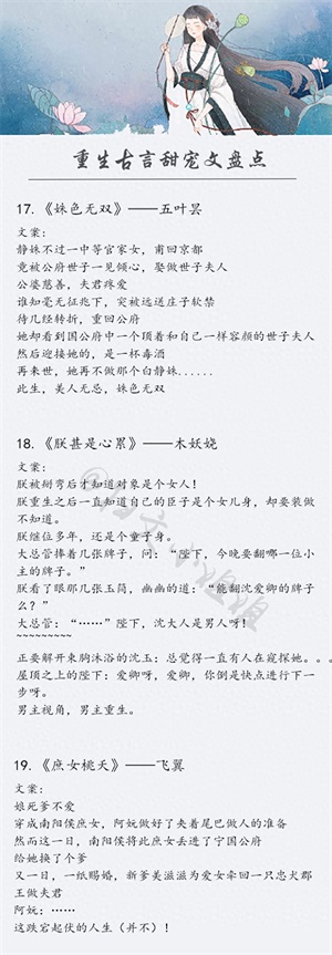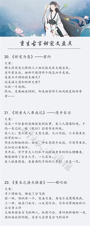 今天,为大家推荐25本精彩的古言重生文,文笔绝佳,都是口碑之作,可放心入坑,喜欢的小可爱一定要收藏起来,慢慢看啊!