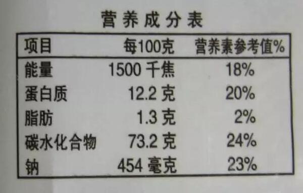 以钠含量1200毫克/100克为例,下一碗面条,大概2两(100g),也就含1200毫克钠,含3克盐(400毫克钠=1克盐),占全天用盐量的60%,这还不算下挂面时加的各种调味品。而我们知道,盐吃多了是不好的,所以买挂面时,应挑钠含量低点的。