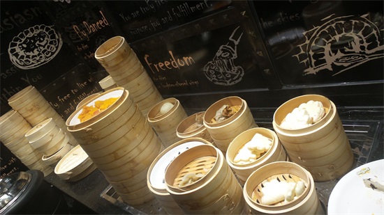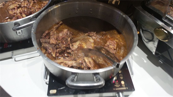 在柜子的一侧有三口大锅,一直在供应红焖羊肉,红烧排骨和红烧猪蹄,我喜欢猪蹄,啃了好几块,同去的朋友则一直在吃羊肉。
