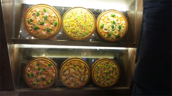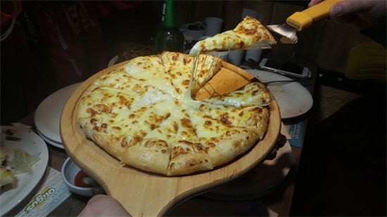 pizza台子上一直是空盘状态,其实烤的速度并不慢,但是大家都是一整个pizza拿走回自己的桌子上。