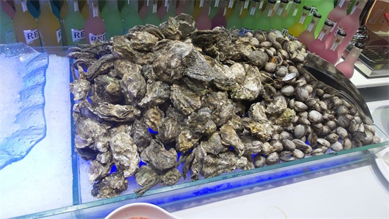 海鲜餐厅当然主打海鲜,凉菜这边,牡蛎无限吃:)虽然也有正常的水果沙拉,但是有牡蛎和大虾,谁要吃水果蔬菜啊。