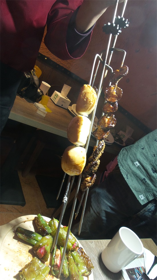 品种还很丰富呢,有烤香肠、烤排骨、烤培根、烤香菇、烤辣椒、烤小馒头……