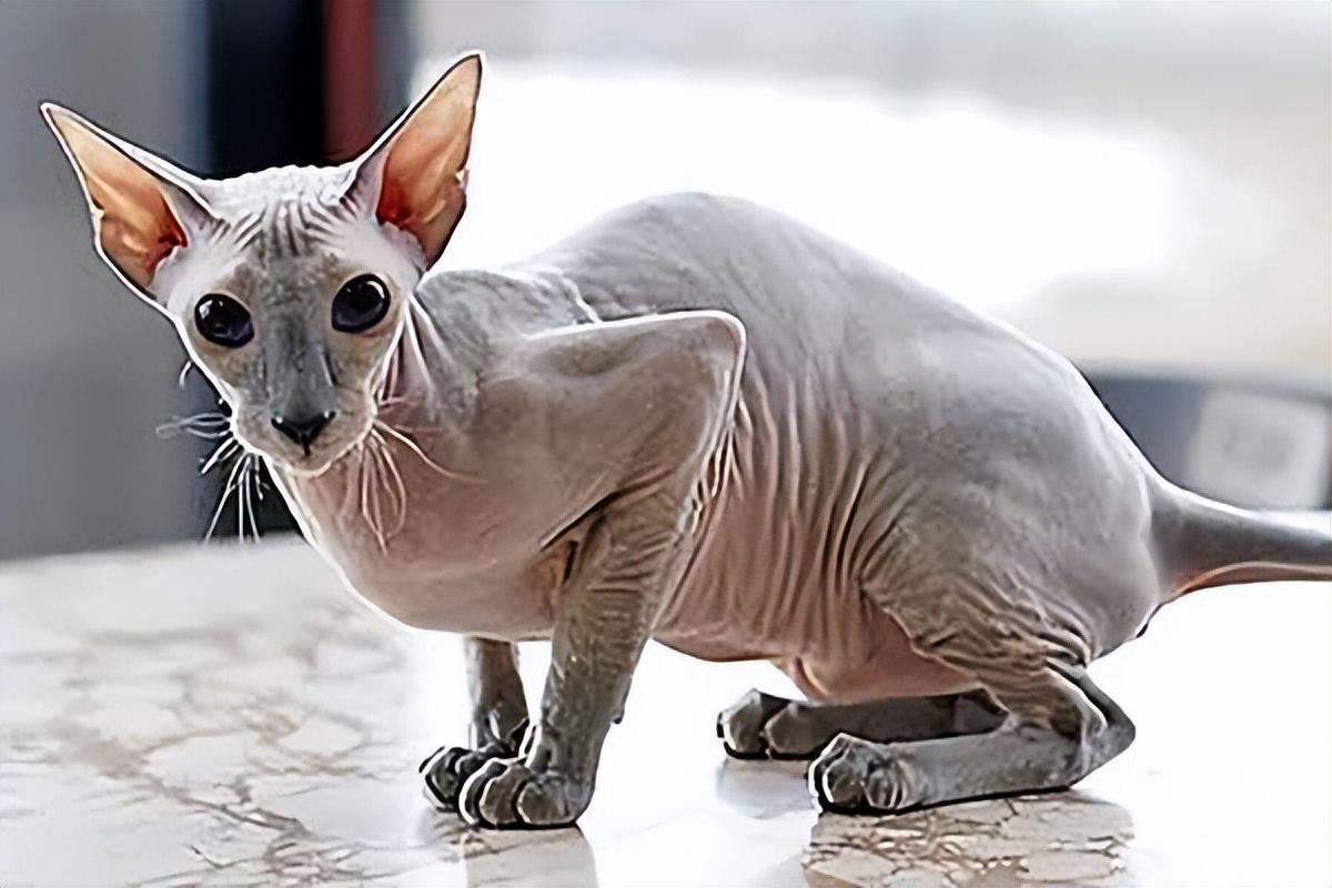 加拿大无毛猫是世界十大外表奇特的猫之一,它是经过人们培育的杂交猫,其无毛的特点专为对毛敏感但是又非常喜爱养猫的人们选育的,但因此皮肤显得非常多折皱,也被一些人觉得丑。