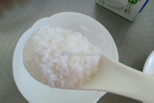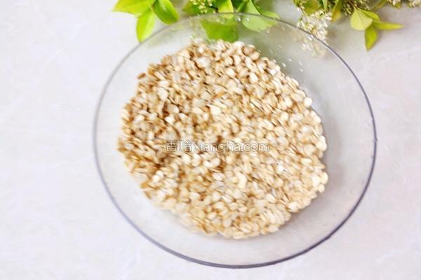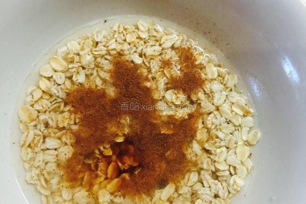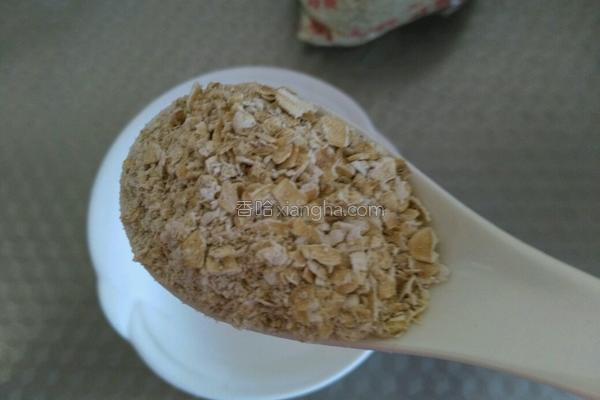 2.燕麦两勺放一碗里。(我用的勺,就是咱家喝汤用的普通小勺)