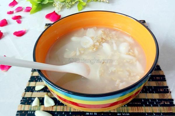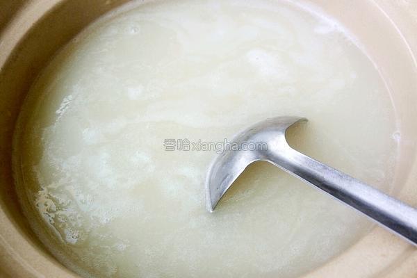 8.已经熬好的百合粥,没有具体时间熬好,自己看着食材熟就可以。