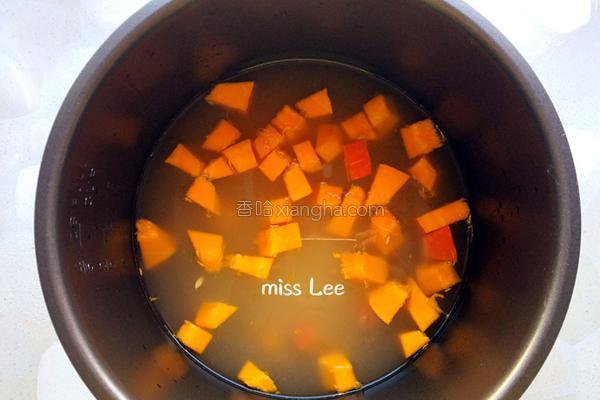 3.将南瓜、燕麦、小米一起放入电压力锅内胆中。