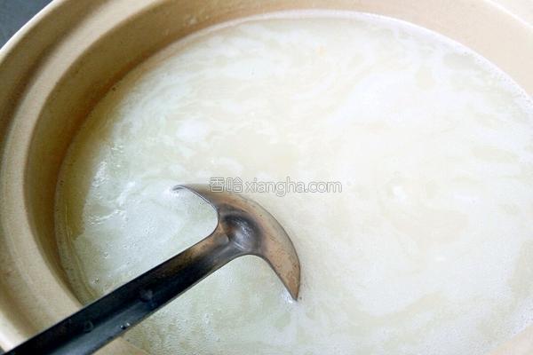 7.煮的差不多熟的粥,改小火慢熬一会。