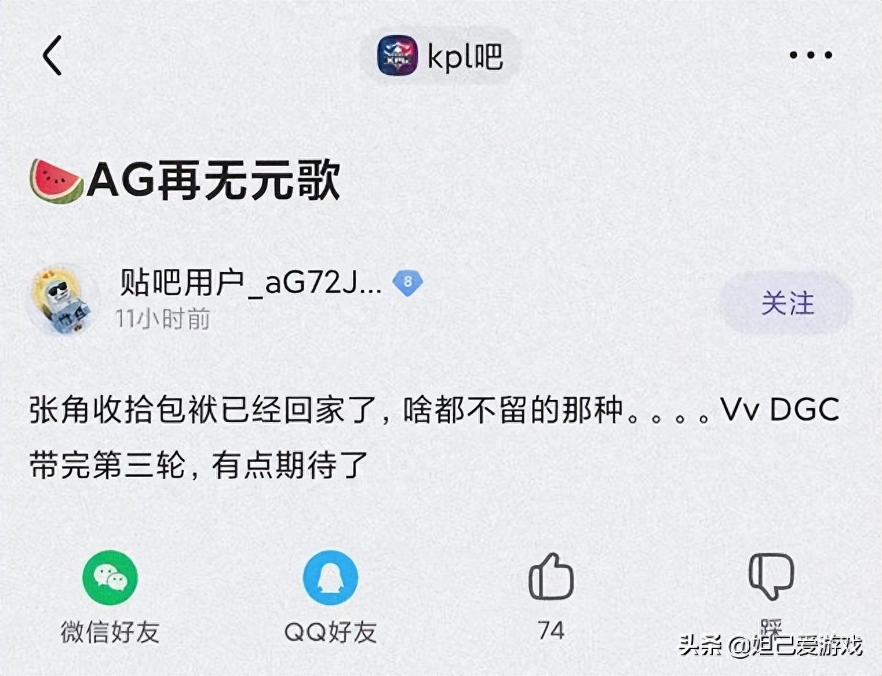 瓜主再放新瓜:“AG教练张角或将离职,老选手Vv重新上台执教”