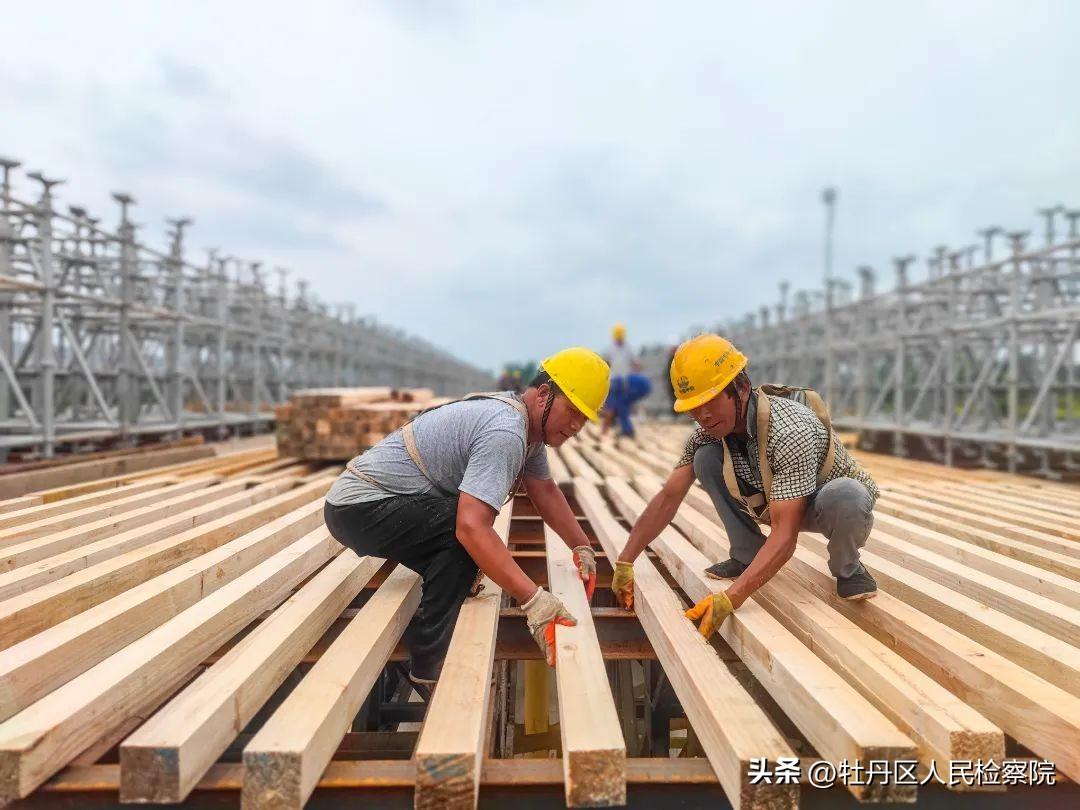 雄商高铁跨长江路连续梁即将合龙。8月23日,在雄商高铁菏泽段跨长江东路特大桥连续梁施工现场,施工人员正在进行方木底模铺设作业。