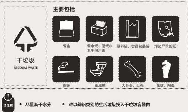 在生活中,干垃圾其实很好分辨,它首先很坚硬,不易腐熟,也不易被粉碎,而且没有什么回收价值。干垃圾好分辨,但也有些不好分辨,比如冰棍的棍子,看似是可回收物,事实是干垃圾;而有些看似干垃圾的,也可能是湿垃圾,比如大骨头、电池等。