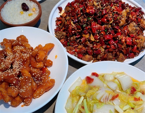 <干锅土豆片>:尝起来外面焦焦脆脆的,里面软软糯糯的。口味偏咸辣,分量很足。