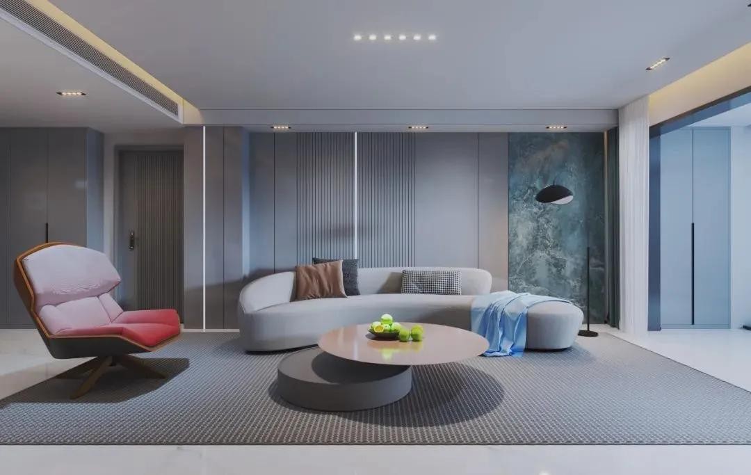 蓝中带灰的色调沉静而柔和,兼具中性寡淡气质,却能给人带来宁静之感,无论是置于客厅还是卧室,都是令人放松的颜色。
