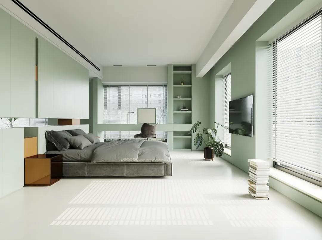 在家居空间中,可依据个人喜好的灰度,将莫兰迪绿运用在诸如墙壁、茶几、沙发等各处,便能打造出一个温和优雅的空间,令人久看不厌且感受温柔平和。