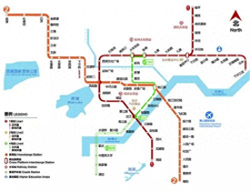 ⒀西湖文化广场站。3号线/机场快线(规划)西湖文化广场、浙江自然博物馆、科技馆。