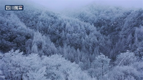 在巴中南江,一夜间,万树银花盛开,雾绕林海,山峦叠嶂。伴着起伏的云海,恍若人间仙境。
