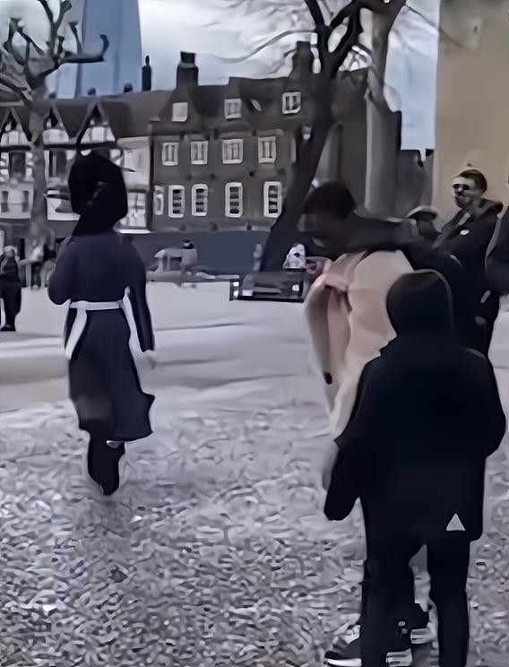 作为半开放的旅游景区,圣诞期间白金汉宫外围满了很多慕名而来的游客,多家电视台也借此机会开展了关于王室或圣诞节的街头采访工作,可一位摄影师却在这一过程中拍下了这样的一幕——一位女王亲卫队的士兵在广场巡逻过程中踢到了一名黑人男孩并且从他的身上跨了过去。
