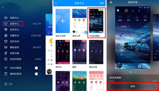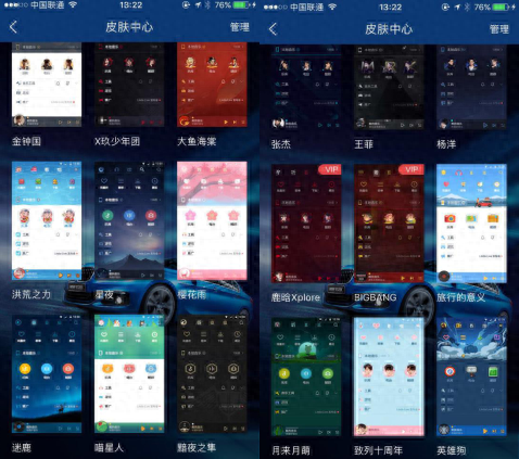 路上很耐心的教了妹子怎么换皮肤,和妹子说这比小时候换空间皮肤还简单,在酷狗音乐APP的个人中心点选皮肤中心然后选自己喜欢的皮肤就好了。教妹子过程中发现还有许多各种类型主题的皮肤。比如周杰伦、张杰、杨洋、鹿晗等等一系列让迷妹们癫狂的皮肤。
