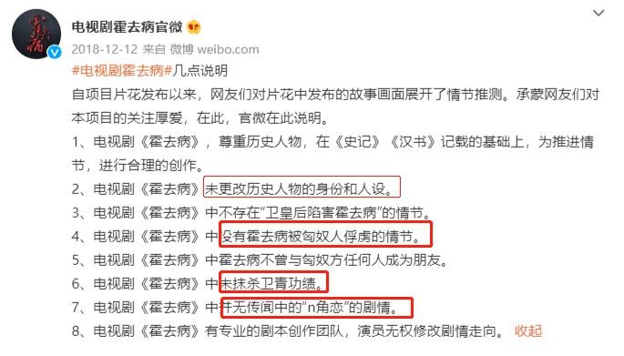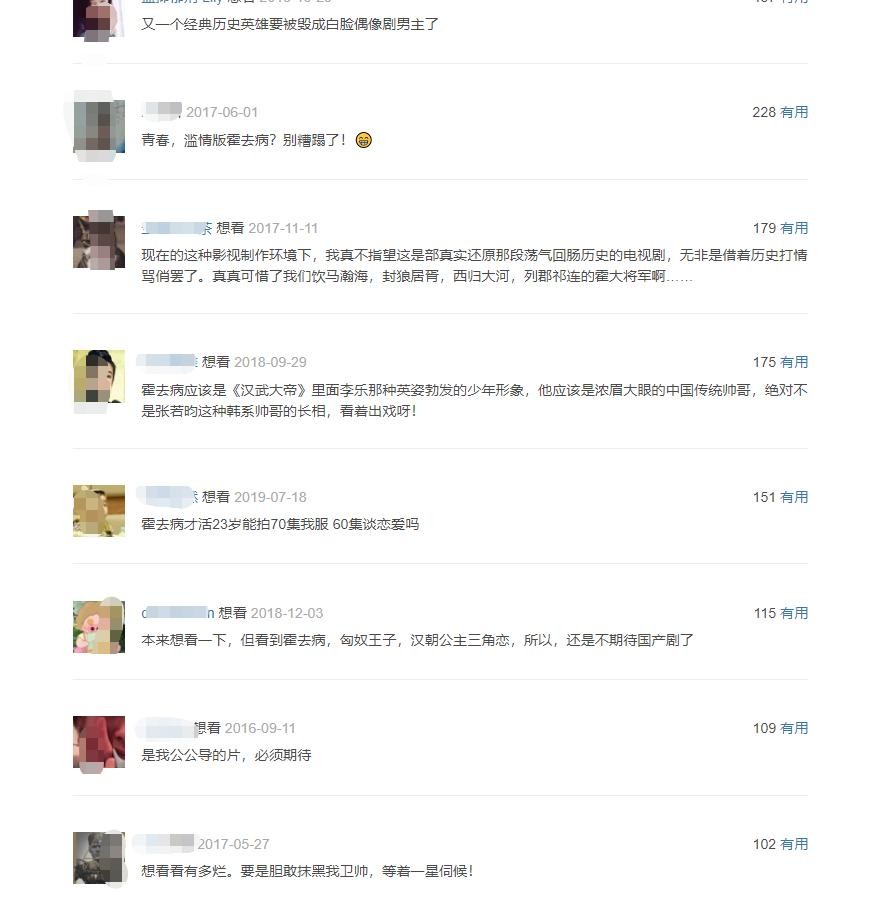 霍去病本身就拥有众多粉丝,所以关注度很高。就历史上而言,该剧进行了改动。并为霍去病,增加了情感线。这不历史粉不乐意了,进行了控诉,禁止该片播出。