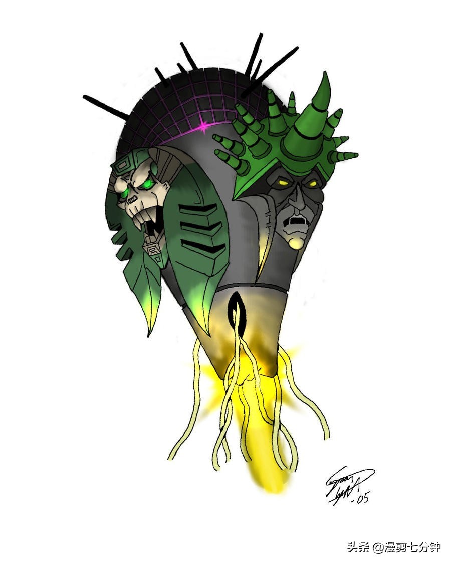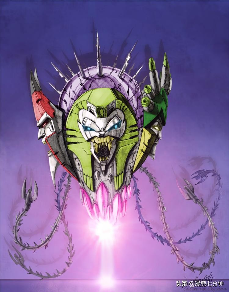 在变形金刚的世界中,有着让人眼花缭乱的各种面孔。无论是喜欢戴口罩的擎天柱,还是骂起人来嘴巴比人类还流利的威震天。都有着可以让我们接受的面孔,至少不会让我们讨厌。然而,变形金刚的世界里却还有一张脸,他是所有人童年的噩梦。我们不愿回忆它,甚至害怕回忆他。那个长着五张脸的怪物,哪怕你只见过一次,就会让你记住它并且种下一辈子的噩梦。没错,这个怪物就是五面怪。大家好,我是漫剪七分钟,今天我们来聊聊那个,可能是所有人都不想聊的怪物。五面怪。