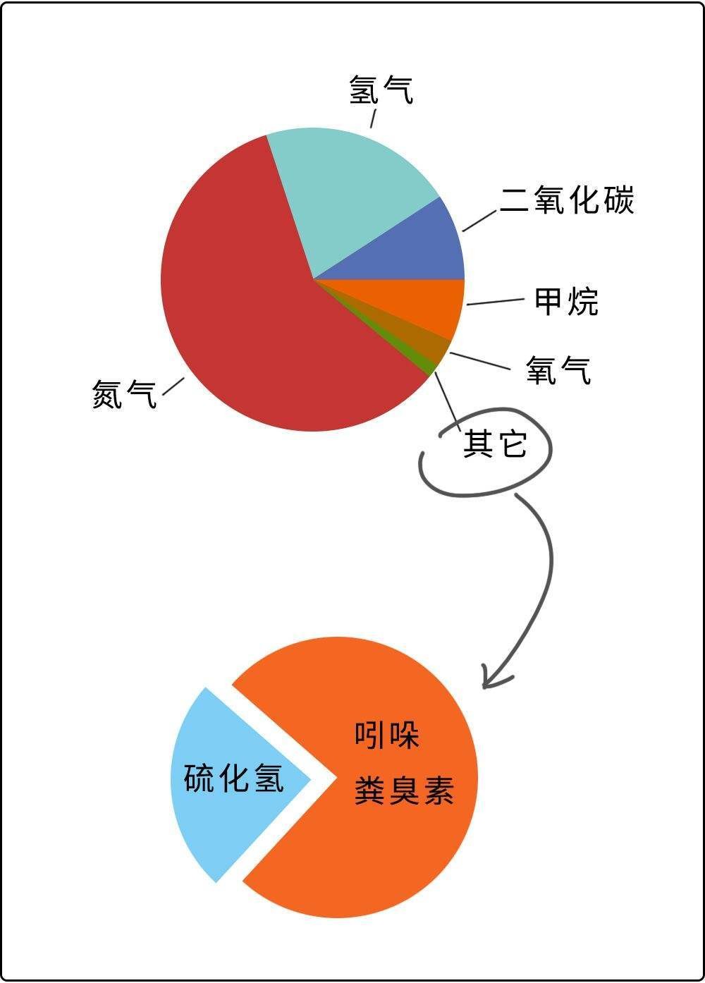 人类也会释放臭味,比如:屁,这是因为人体在消化食物时,肠道内的微生物除了能帮助我们分解食物,还会将一部分的食物转化为二氧化碳以及硫化氢、吲哚和粪臭素等,而这些成分中有一些带有臭味。