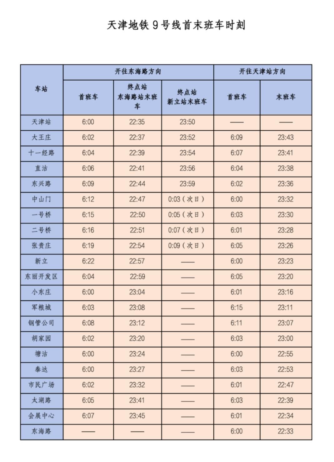 新信号系统下,9号线全线新增5处列车始发点位,始发车站增至13处。实现开往东海路方向的直沽站、中山门站、小东庄站、钢管公司站、泰达站、市民广场站等16座车站,开往天津站方向的市民广场站、泰达站、张贵庄站、中山门站等8座车站的首班车时刻提前,进一步满足市民早间出行需求,激活城市发展脉动。