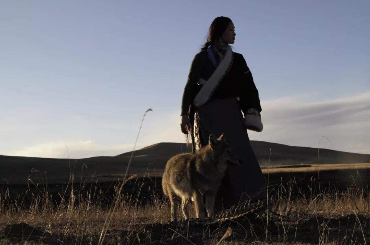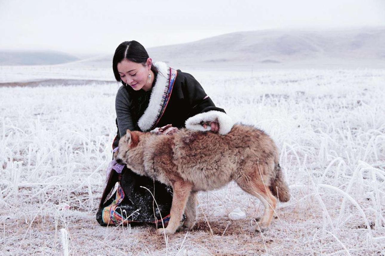 2014年的冬天,若尔盖草原上,身穿藏袍的她正隔着一条河与已经成为狼王的“格林”对望。