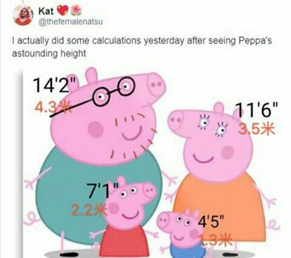看到佩奇一家人的身高数据后,有网友“自闭”了:这哪里是“小猪”佩奇,分明是“大猪”佩奇吧!
