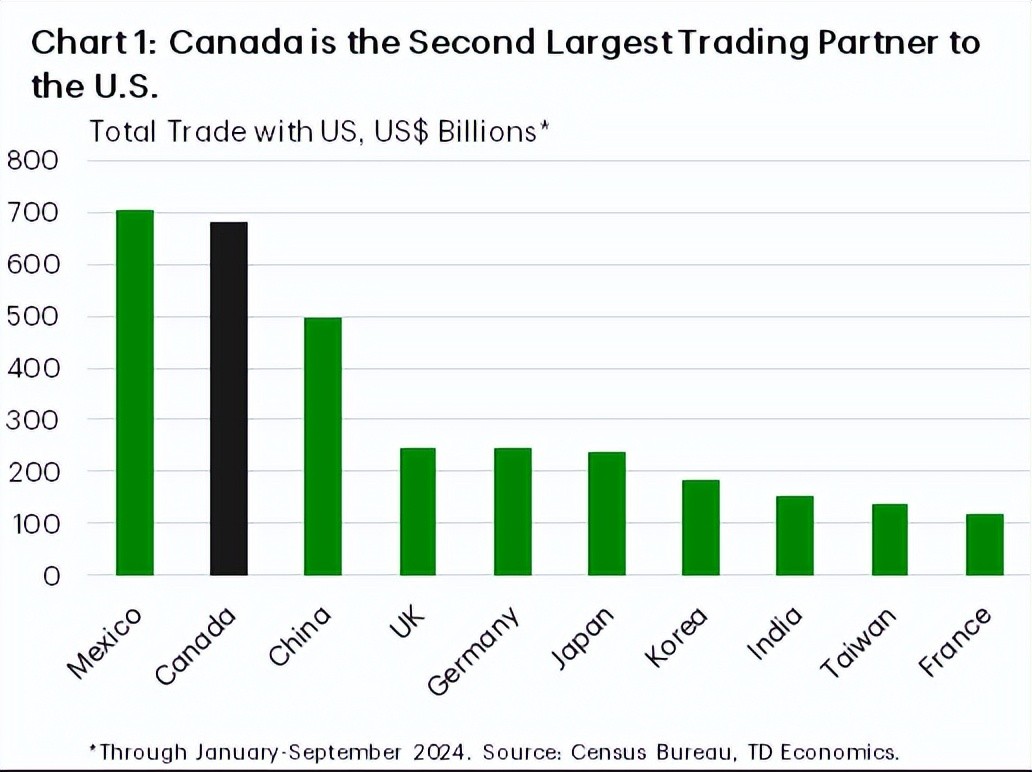 2025年2月1日,特朗普亲自签署行政命令,把加拿大进口商品的关税由0调整为25%。根据美国贸易部的最新统计,在过去的一年里,美国进口加拿大商品的总价值超过4000亿美元。