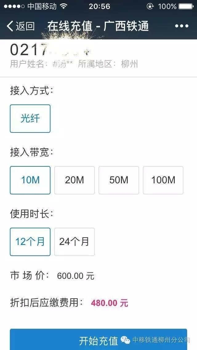 铁粉们首先关注“中移铁通柳州分公司”服务号