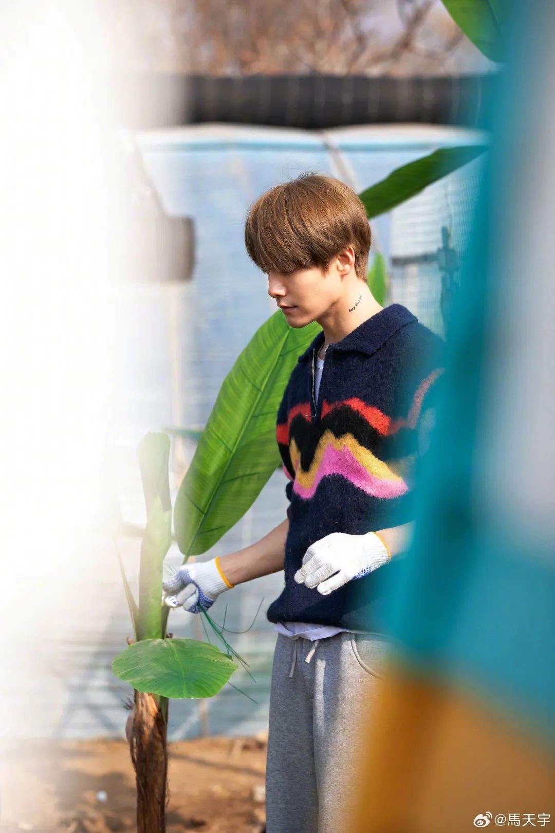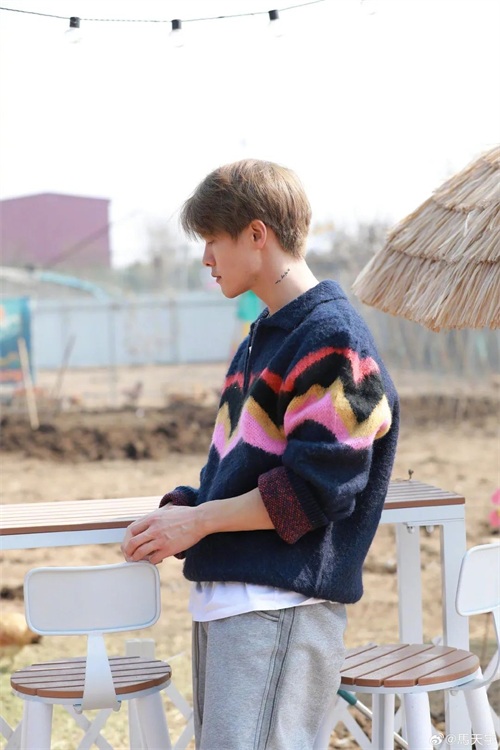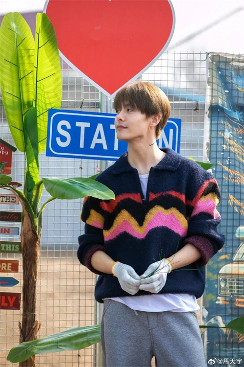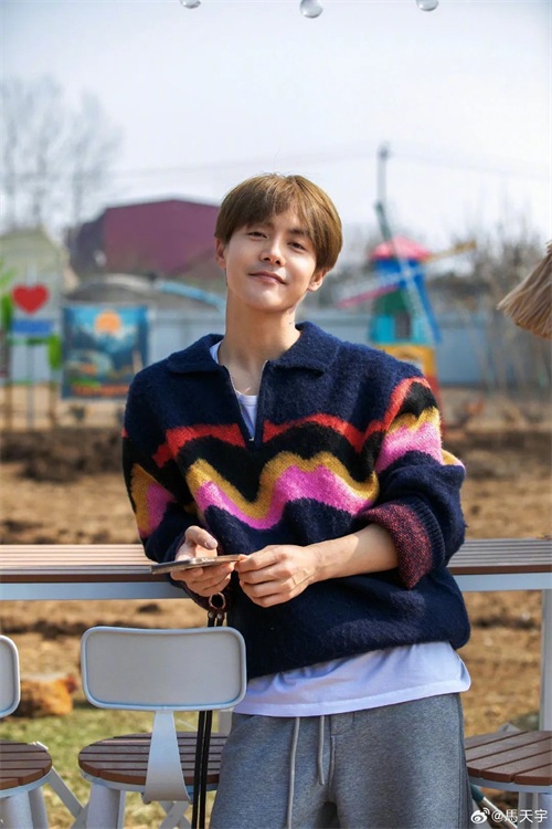 而照片里的马天宇,穿着色彩鲜艳的条纹毛衣,状态好到爆!