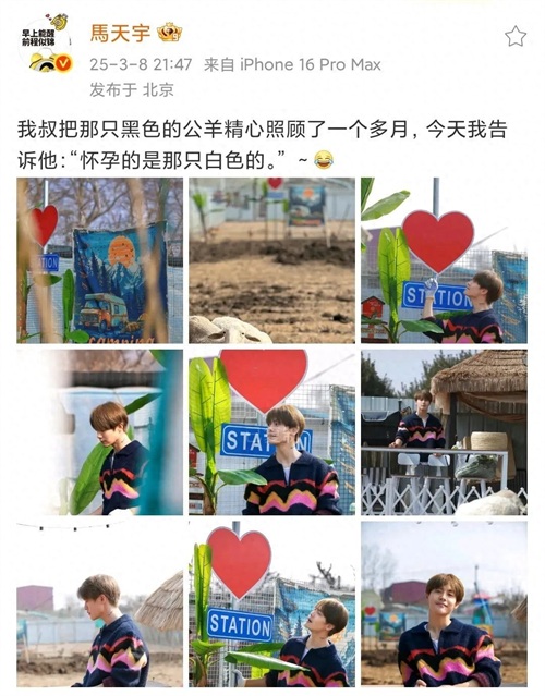 刚刚,马天宇在个人社交平台发了一组九宫格,并配文表示:我叔把那只黑色的公羊精心照顾了一个多月,今天我告诉他:“怀孕的是那只白色的。” ~