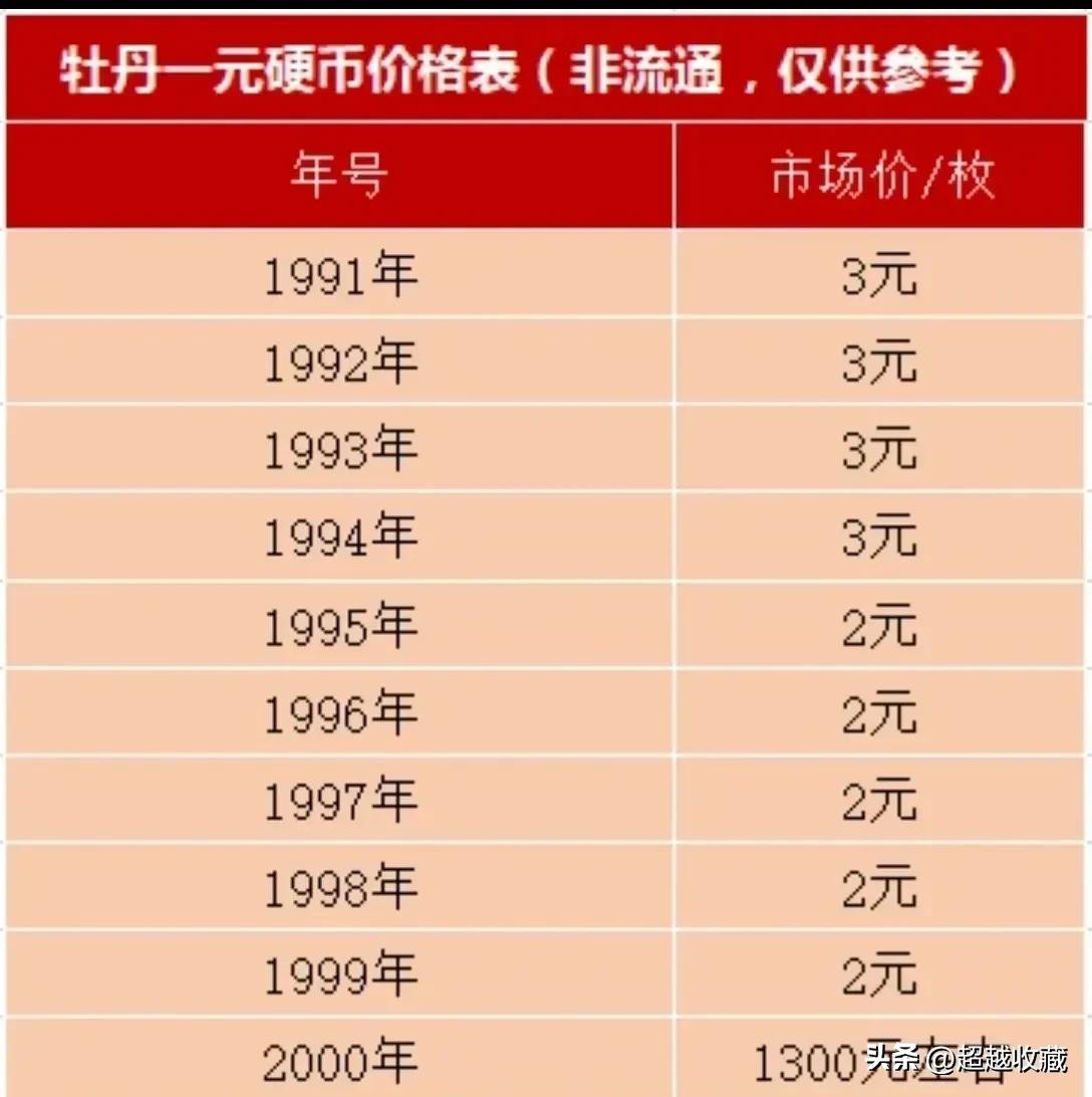 不同年份的牡丹一元硬币价格差异较大,其中以1992年的牡丹一元硬币价格最高,单枚价格可达110元左右。这是因为1992年牡丹一元更加稀缺发行量更少。相比之下,其他年份的硬币价格虽然较低,但也具有一定的升值空间,下面是小编找到的最新牡丹一元硬币价格表,大家可以参考一下。
