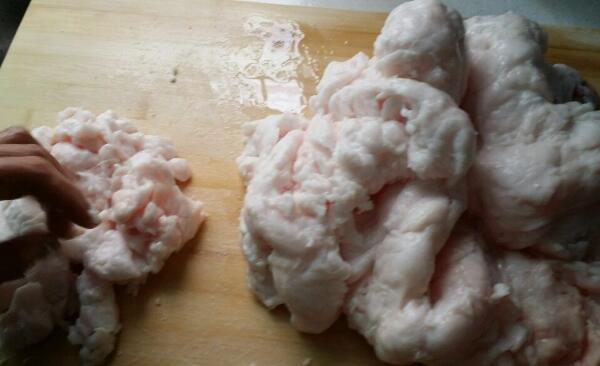 1、肉要新鲜:肥猪肉一定要是新鲜的,如果放了几天,就炸不出蓬松效果;