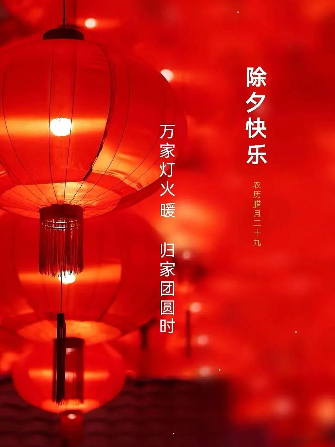 1月28日,农历腊月二十九,除夕。除夕是我国传统佳节,也是一个万家团圆的日子,天南地北的味道,同一种家的热闹!万家灯火暖,归家团圆时,祝愿大家在新的一年里:事事皆如意,好运常相伴,除夕快乐!