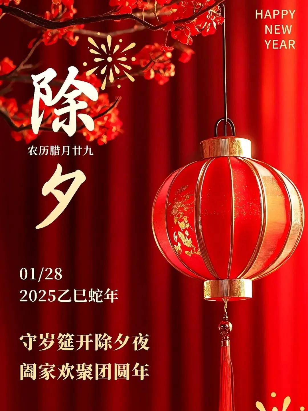 2025蛇年的除夕到了,在此我特意收集了精美的除夕图片送给大家,最美好的祝福也奉上:蛇年吉祥如意,除夕快乐!