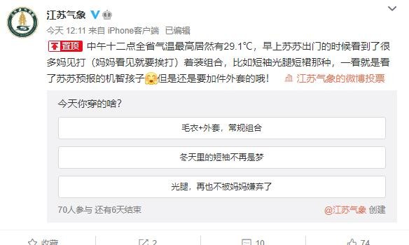 11月18日,江苏多地气温偏暖。南京阳光灿烂,风有些大,但是吹在身上暖洋洋。不看日历,仿佛还在夏天。中午在外面穿着短袖也不觉得冷。还有人表示,已经热得开风扇了。