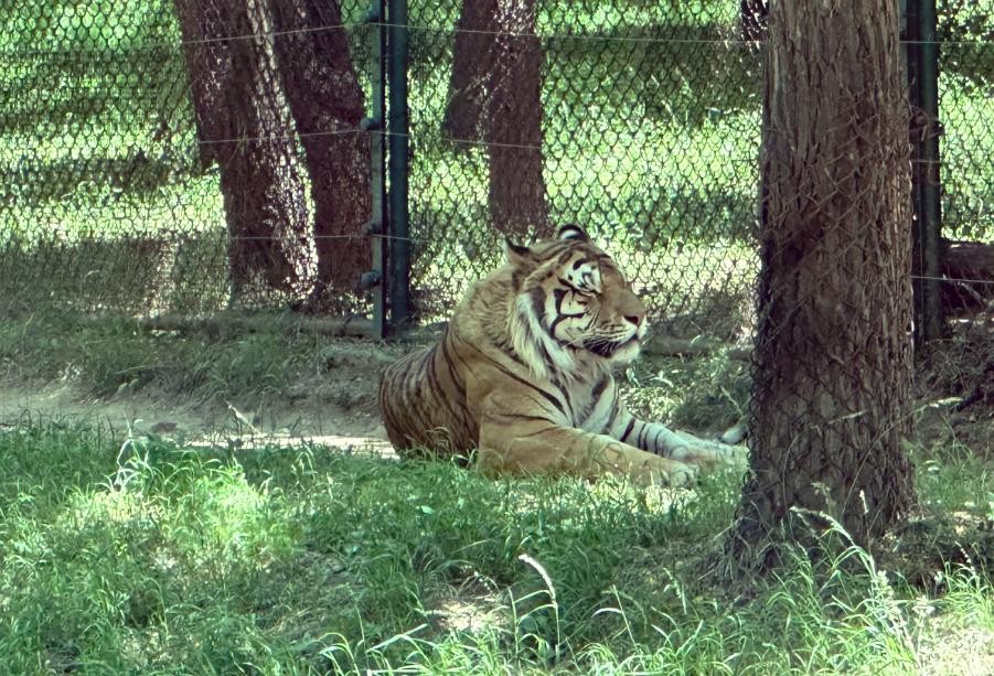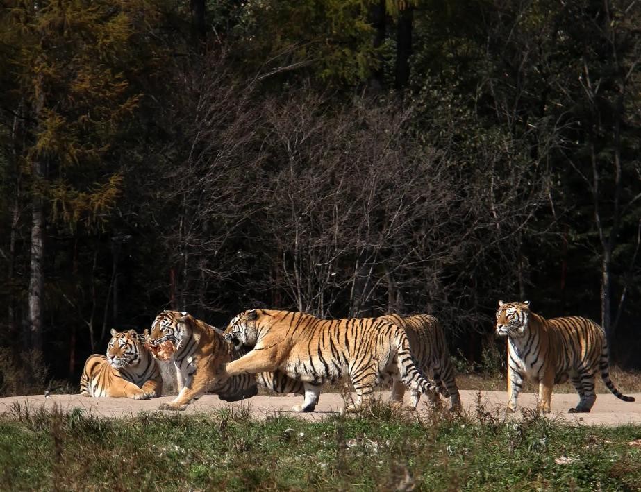 “在进入东北虎园区之前,我们还经过了孟加拉虎和马来熊园区,这些园区里的道路都是笔直的,我们就以为东北虎园区也是。”