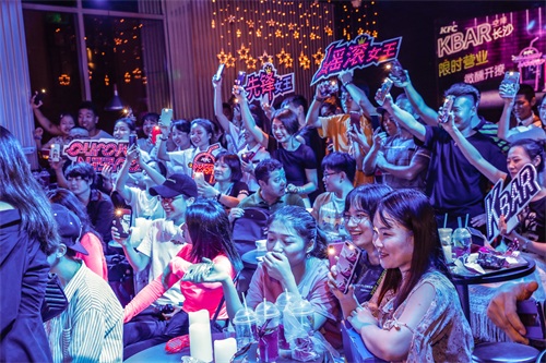 七夕夜,KFC-K BAR空降长沙,肯德基湖南首家音乐主题餐厅邀请了湖南本地美食博主、抖音网红、Vloger参加了一场high翻天的电音潮趴。花式调酒、poping舞蹈,Dj打碟,灯光太炫目,让人眼花缭乱。